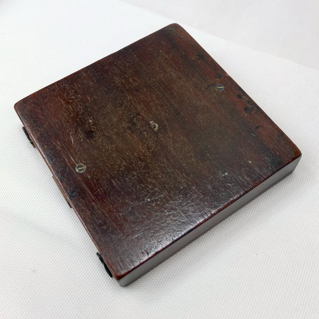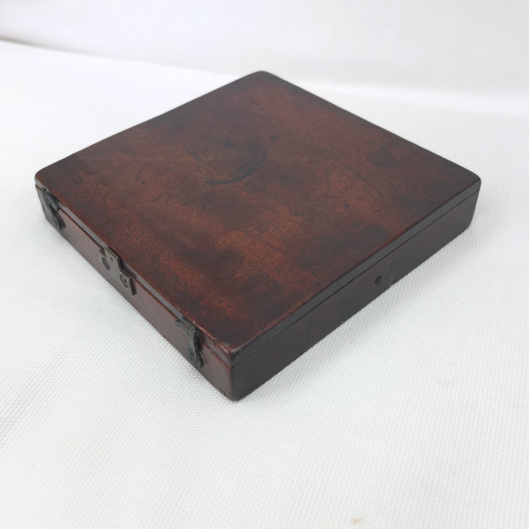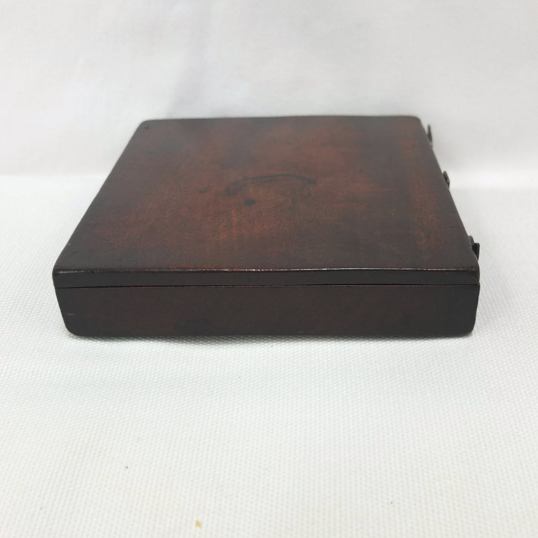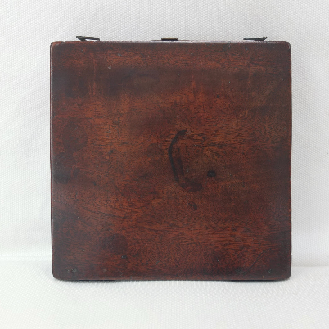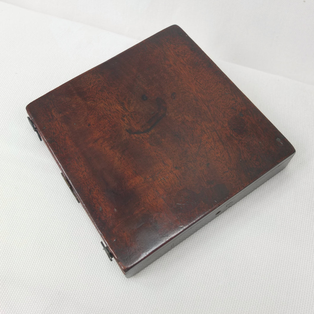 A rare Georgian mahogany cased compass, made in London by Dollond c.1790. The compass is signed by 'Dollond, London'. This type of wooden cased compass was produced from the middle of the 18th century to the early 19th century. This is a well made and substantial compass, with a large sized mahogany case (145mm x 150mm), silvered and engraved compass card, and English bar needle. There is transit lock, operated by a small pin and lever, which locks the needle when the lid is closed. The compass is in full working order and finds North well.