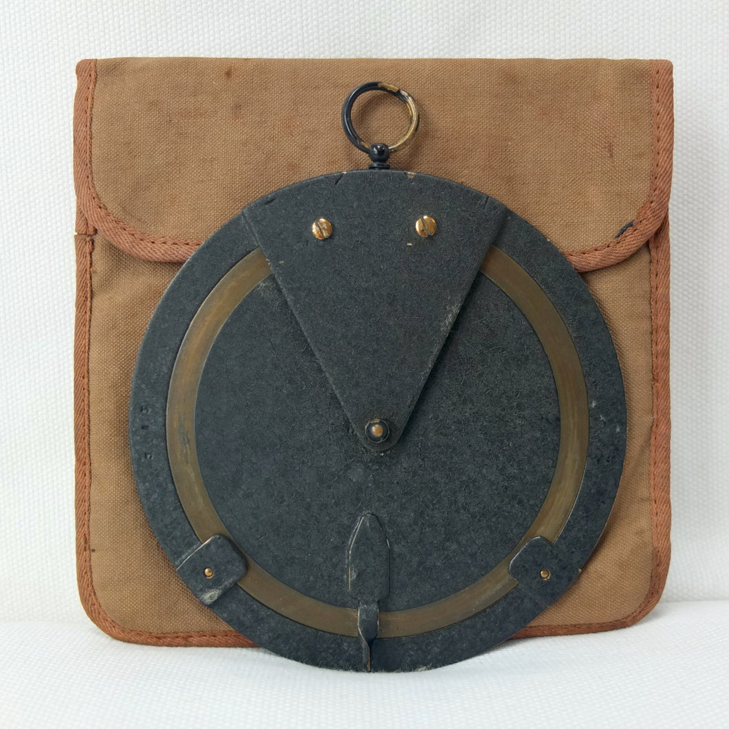 In very good condition and full working order. With the original lacquered finish to the brass in excellent condition. The rotating discs move well and display the readings correctly. The canvas case is in very good condition, with some marks.