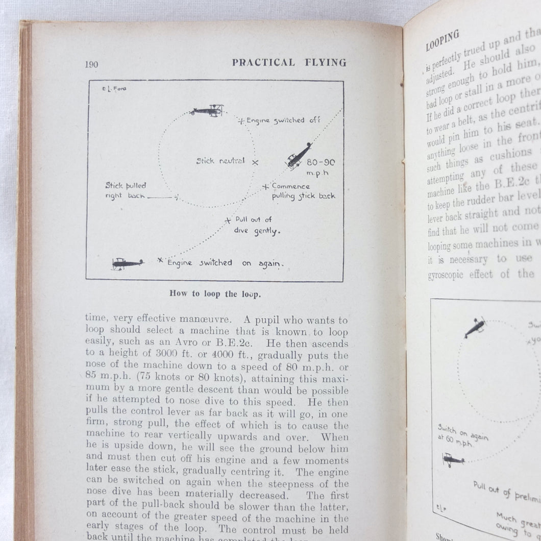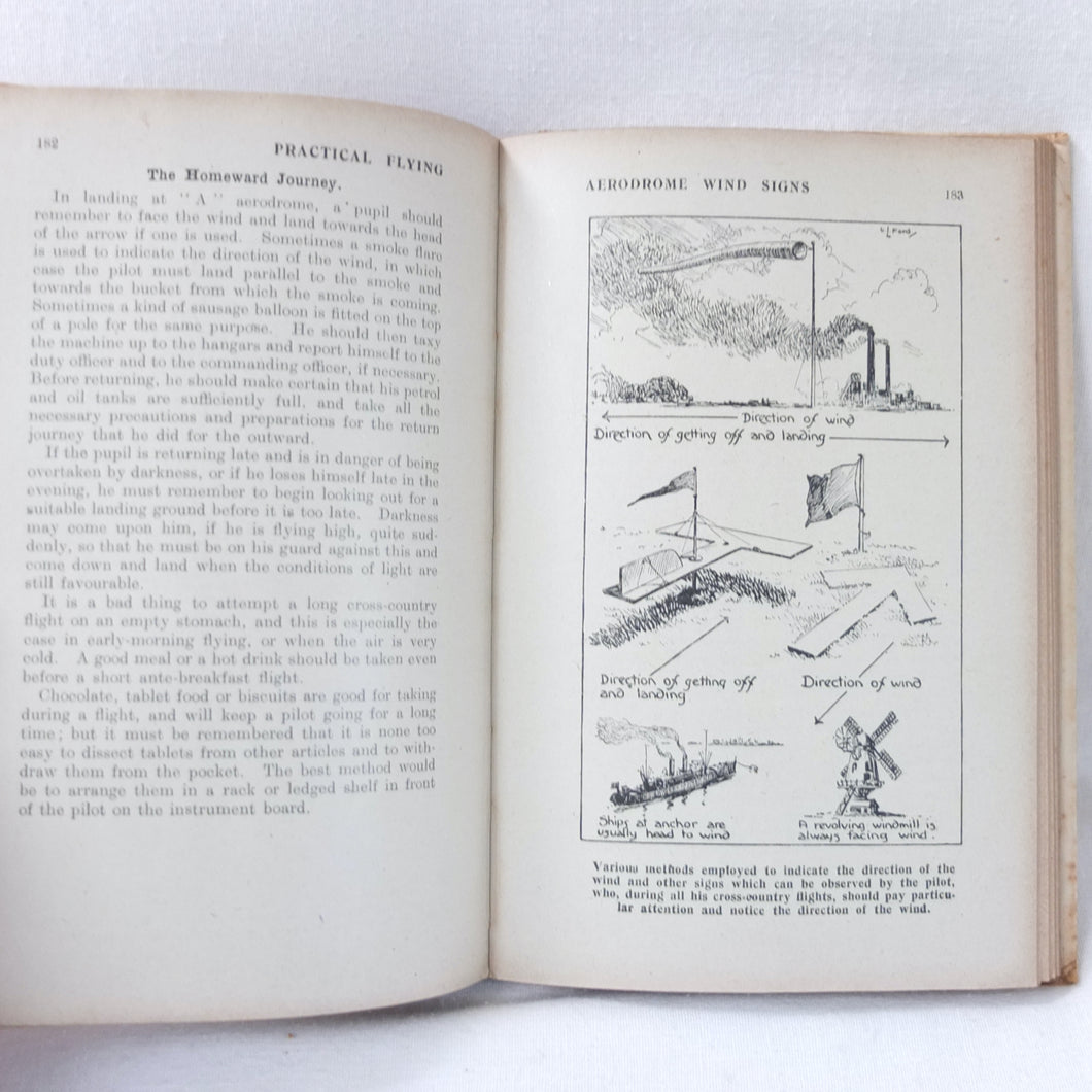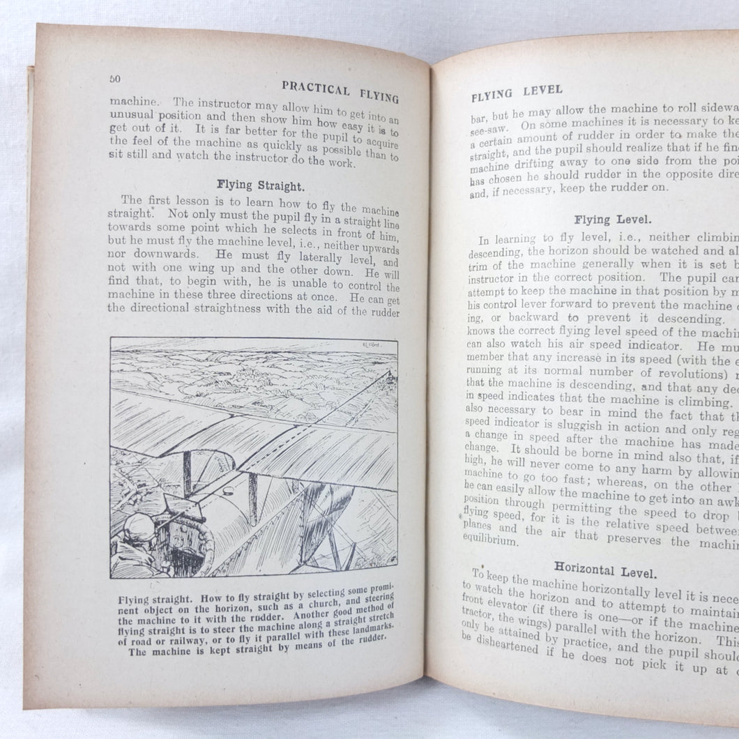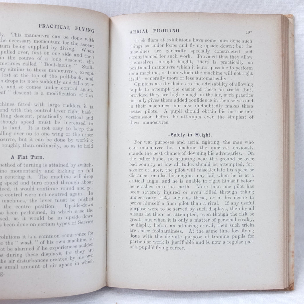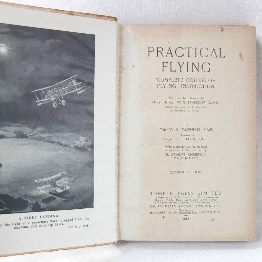 Practical Flying is probably the best First World War flying manual. Written and illustrated by experienced R.A.F. officers, it was first produced early in 1918 for the use of trainee R.F.C. and R.N.A.S. pilots. With its very rare original dust jacket, featuring an illustration of a Sopwith biplane inverted at the top of a loop. This is the second edition, produced just after the establishment of the RAF in April 1918.