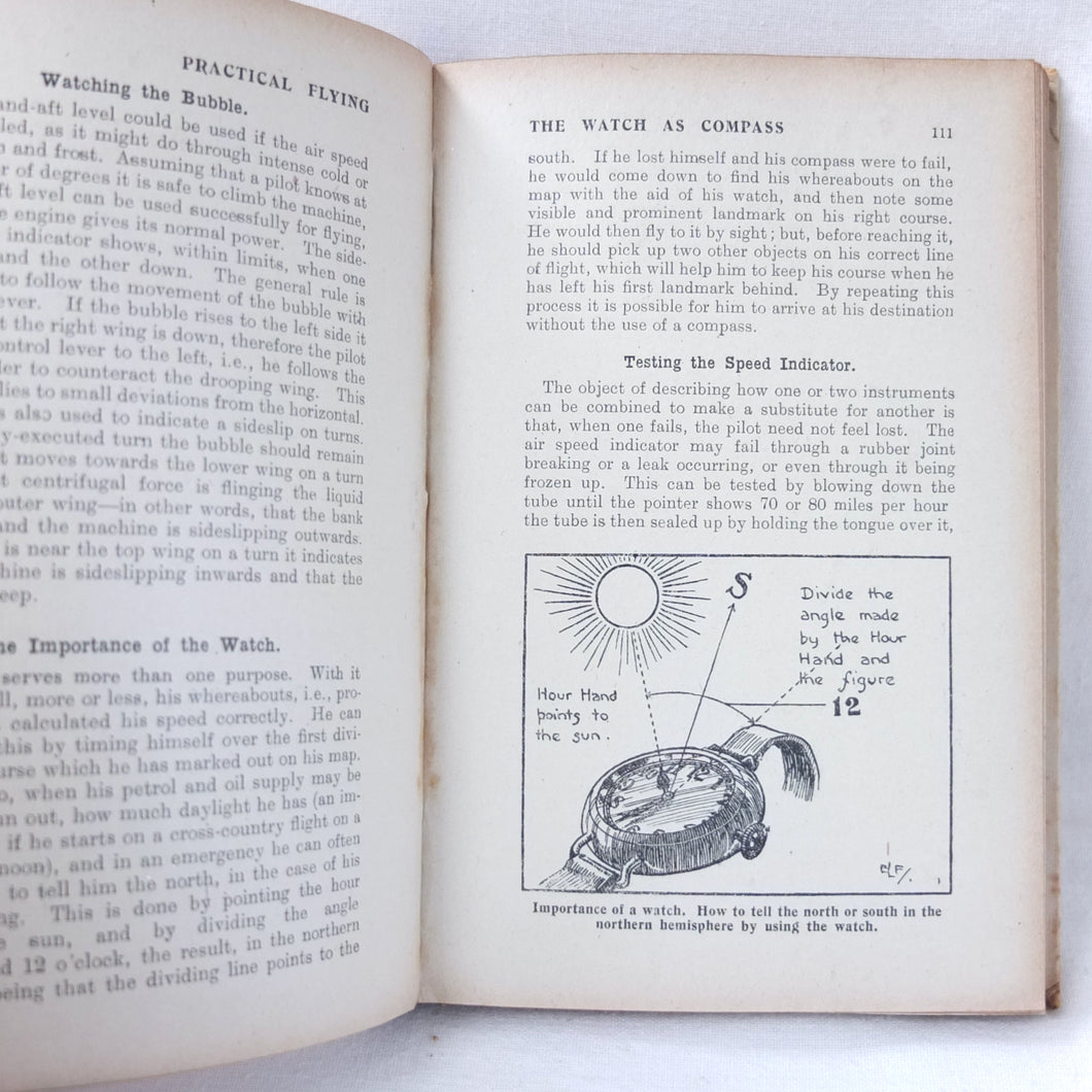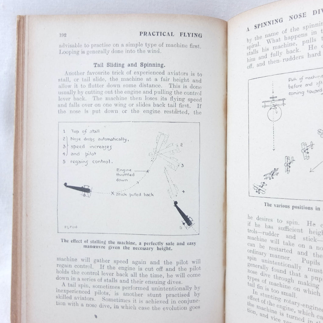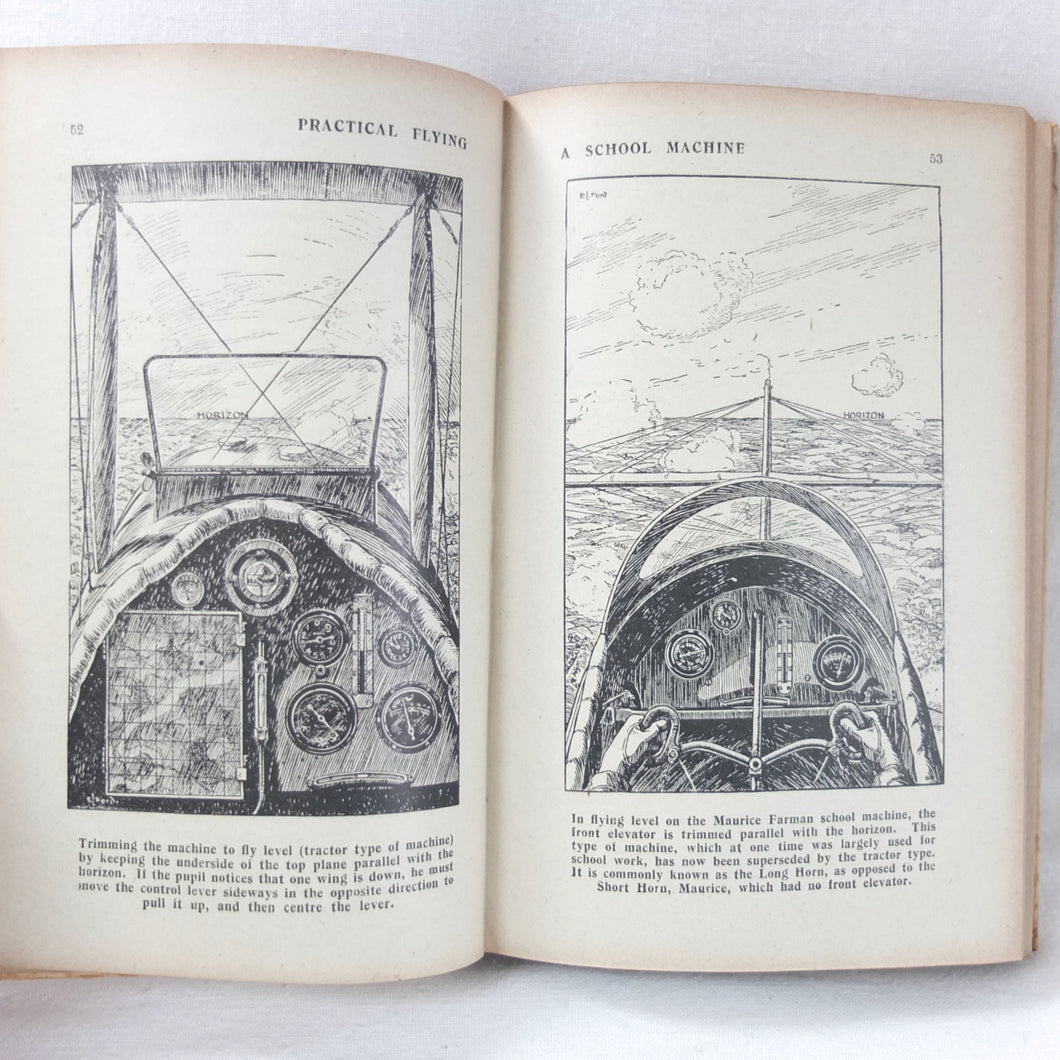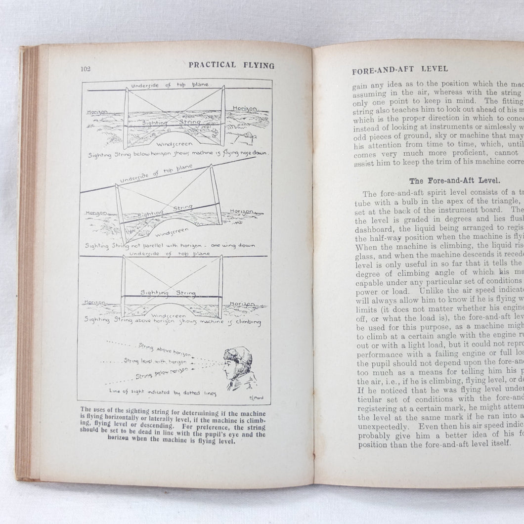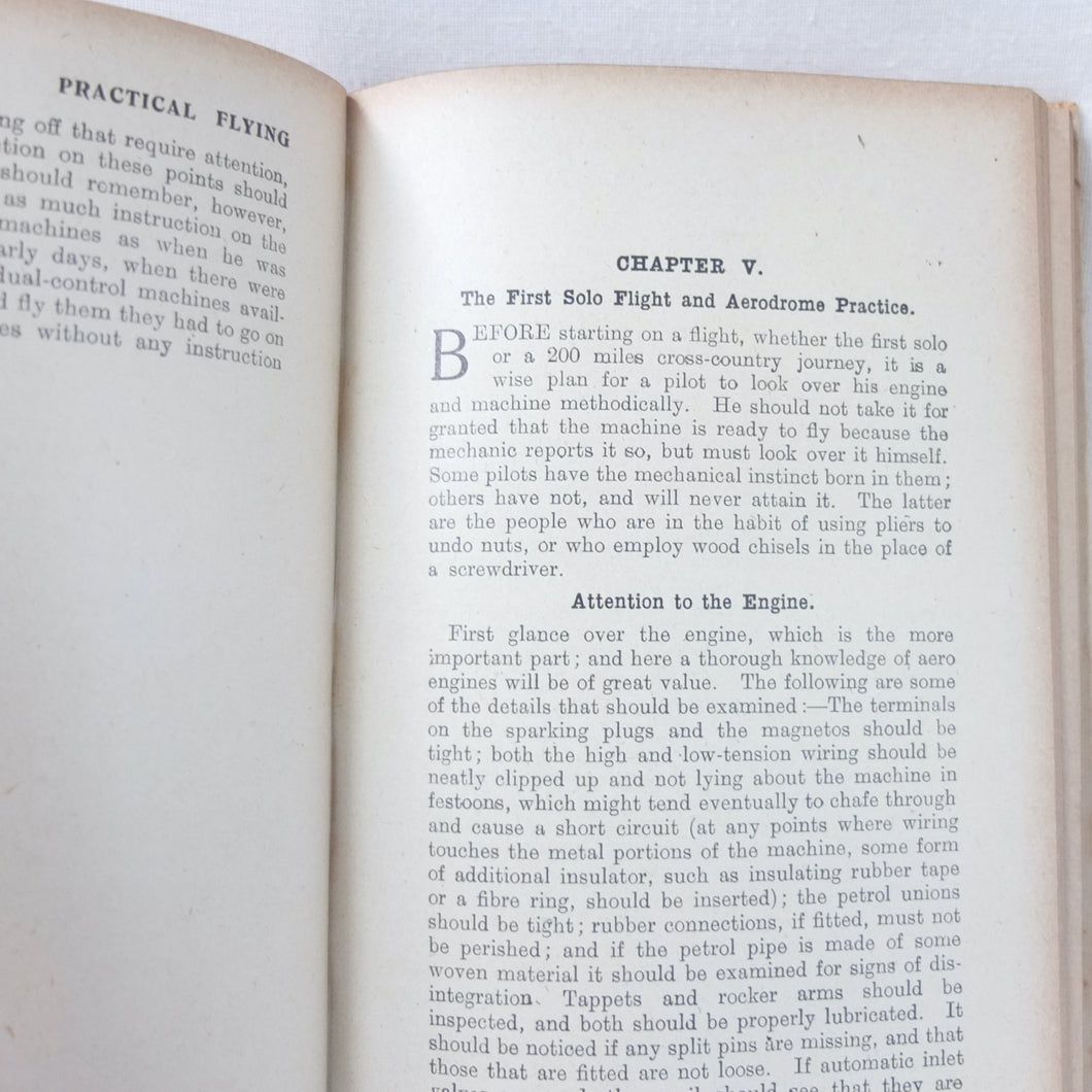 Practical Flying is probably the best First World War flying manual. Written and illustrated by experienced R.A.F. officers, it was first produced early in 1918 for the use of trainee R.F.C. and R.N.A.S. pilots. With its very rare original dust jacket, featuring an illustration of a Sopwith biplane inverted at the top of a loop. This is the second edition, produced just after the establishment of the RAF in April 1918.