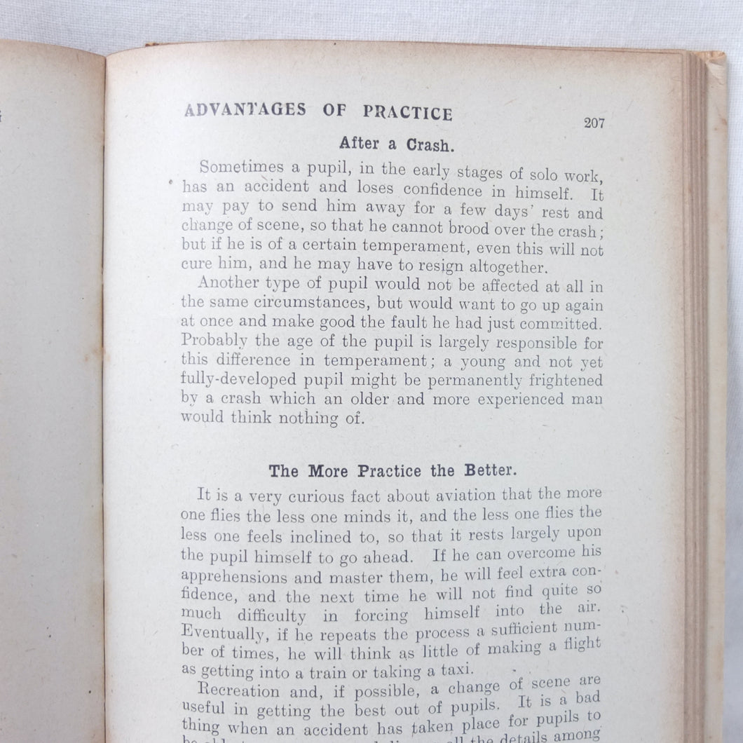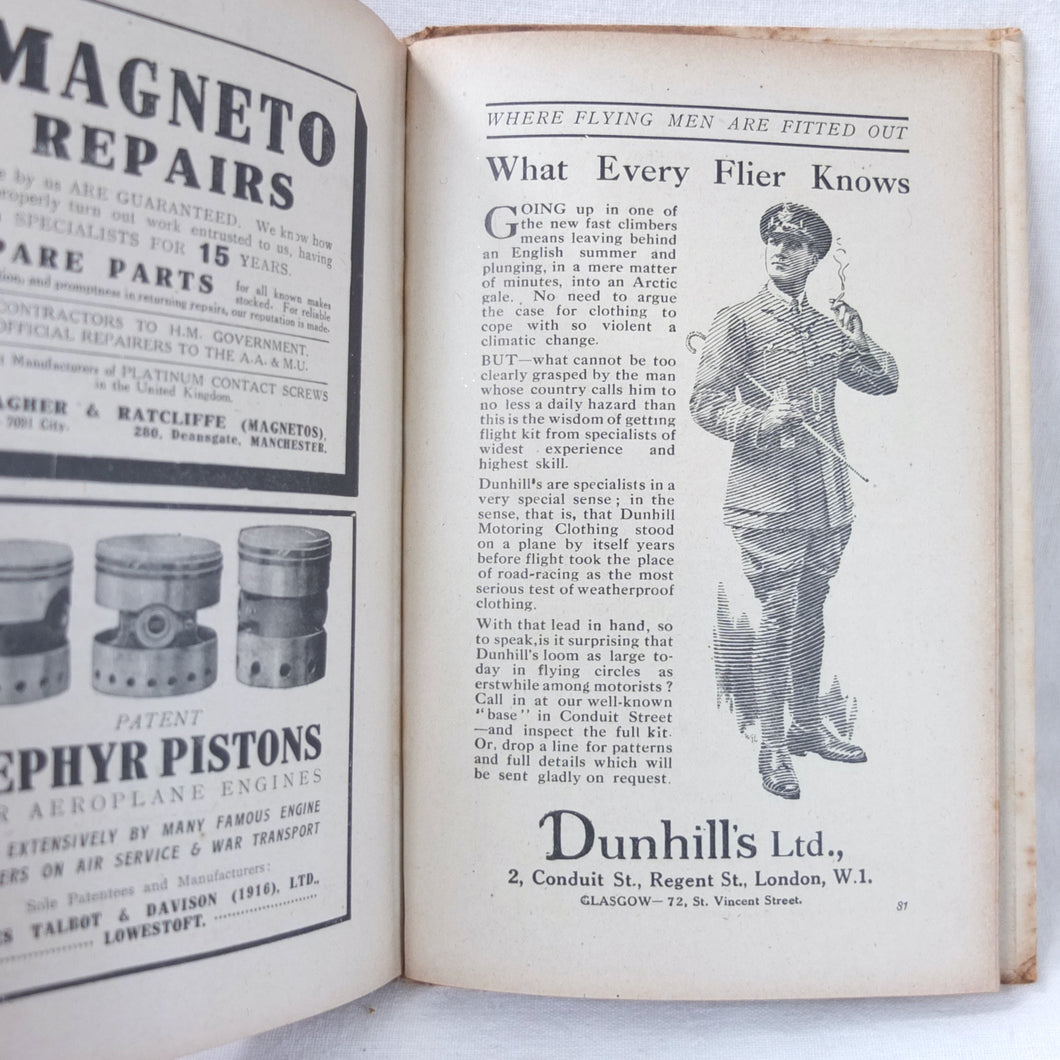Superbly illustrated with numerous diagrams and line drawings, this book is a fascinating insight into the practicalities of military flying during WW1. Covering everything from how to spin the prop, and how to perform 'stunts' like an Immelman turn or a 'falling-leaf' descent, to aerial fighting and the action to take after the inevitable crash that all WW1 flyers experienced at some time or other. This book tells you virtually everything you would need to know to fly a world war one aircraft. It also includes a number of very interesting advertisments for aircraft manufacturers and flying equipment suppliers.