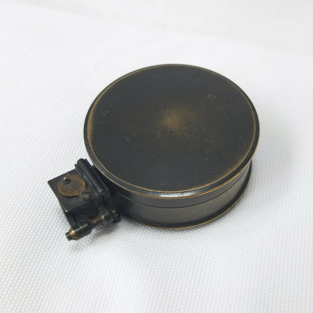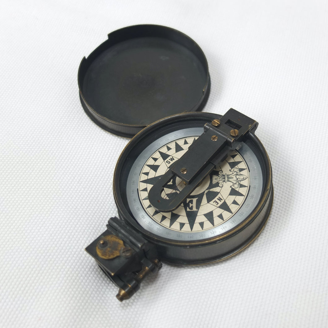 In very good condition and full working order. The compass finds North well. The brass case has some wear to the original bronzed finish. The dial, glass, prism and sights are all in very good condition.