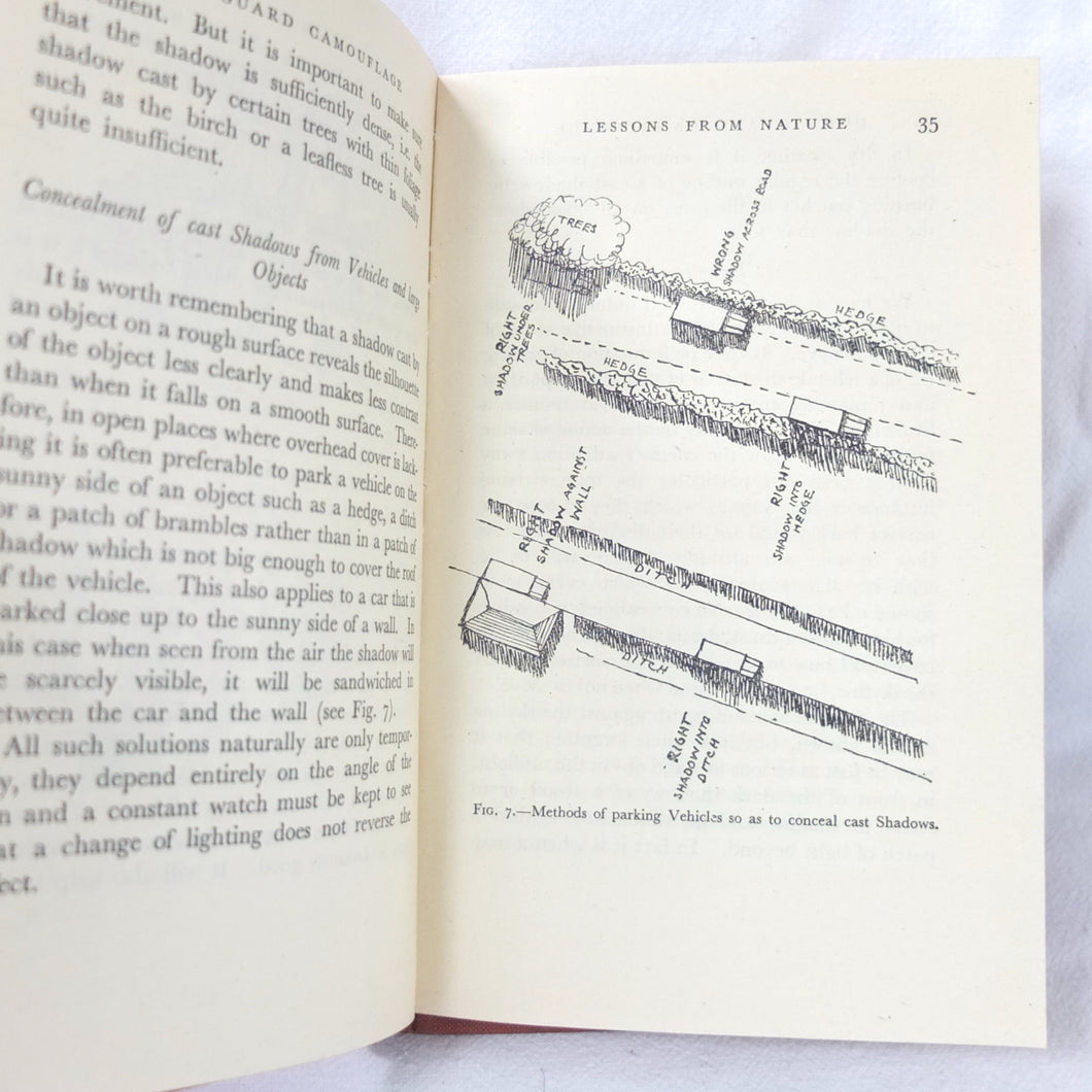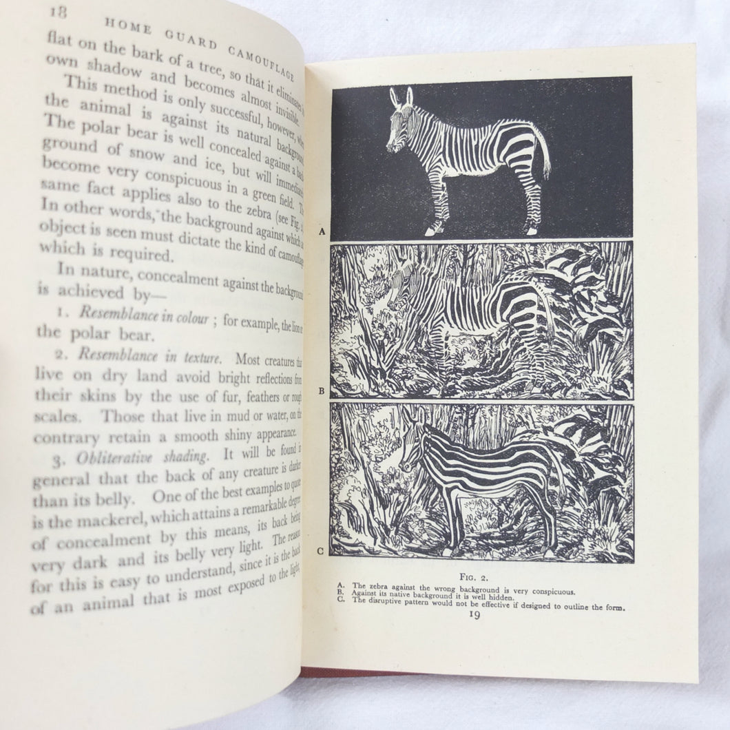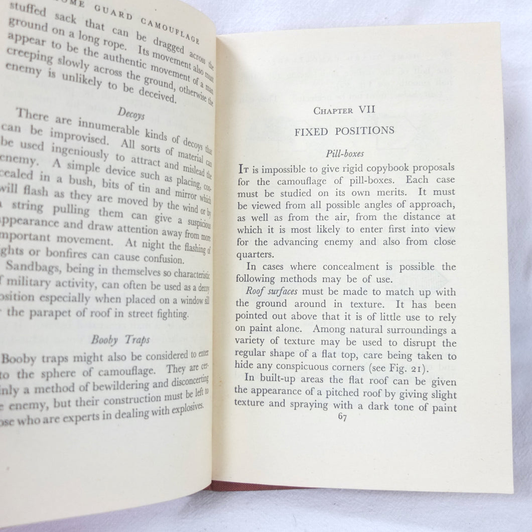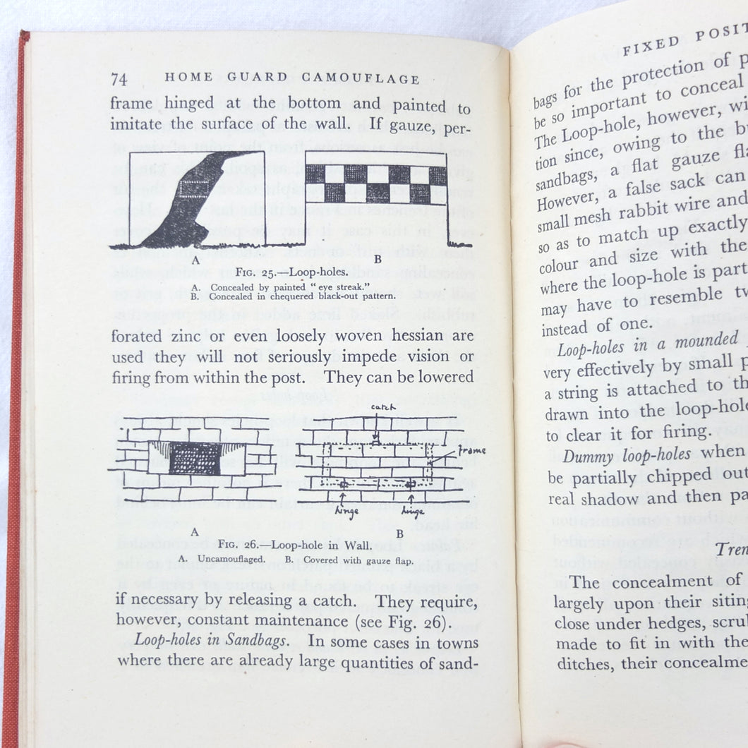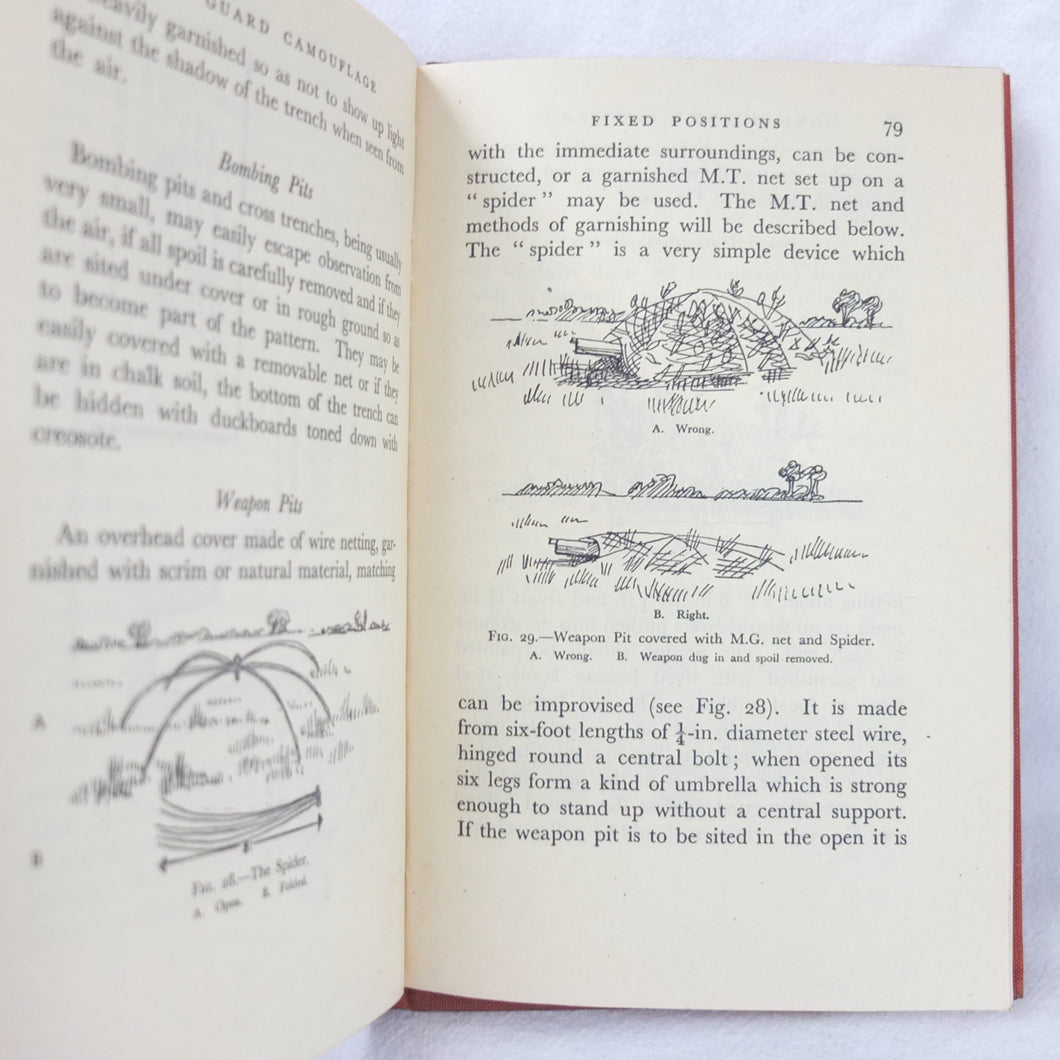 Home Guard Manual of Camouflage is a rare WW2 camouflage handbook written by the English surrealist Roland Penrose. Published in October 1941 and reprinted four times by April 1942, when this Fifth Impression was printed. Very well illustrated with line drawings, diagrams and photographs, it was intended to train the Home Guard in the crucial art of camouflage and concealment. The book provided accurate guidance on the use of texture and colour, especially for protection from aerial photography. Initially, this new concept of using deception was not universally accepted, being anathema to many of the old soldiers who were now serving in the Home Guard: