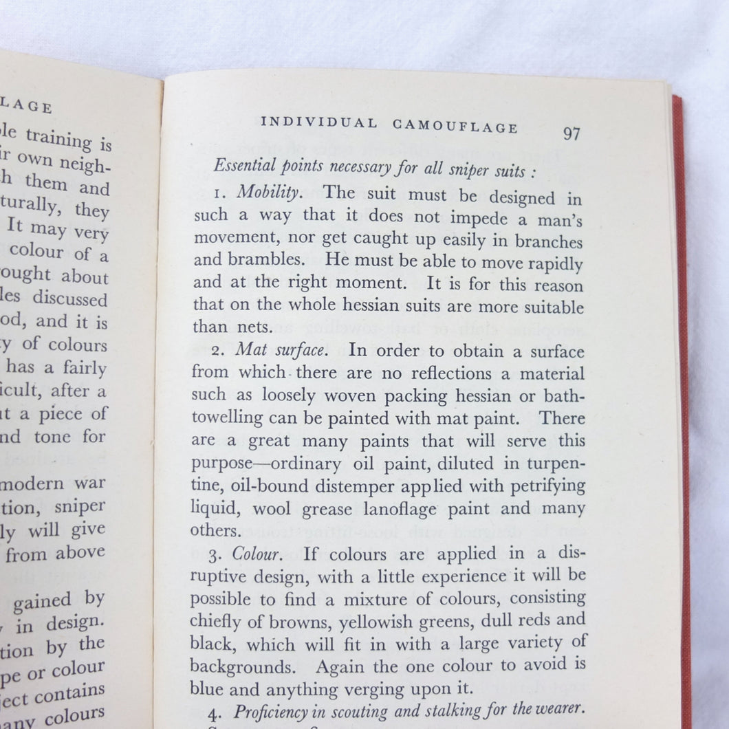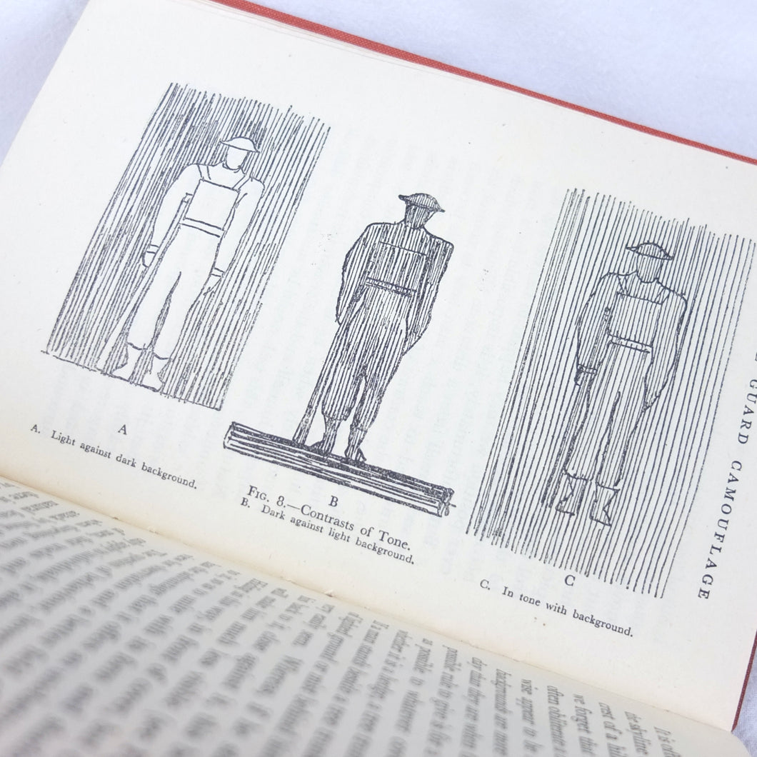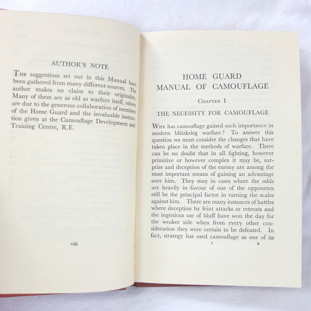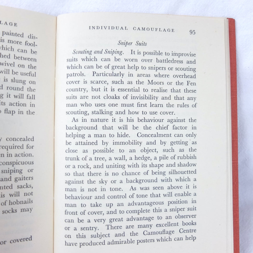 Home Guard Manual of Camouflage is a rare WW2 camouflage handbook written by the English surrealist Roland Penrose. Published in October 1941 and reprinted four times by April 1942, when this Fifth Impression was printed. Very well illustrated with line drawings, diagrams and photographs, it was intended to train the Home Guard in the crucial art of camouflage and concealment. The book provided accurate guidance on the use of texture and colour, especially for protection from aerial photography. Initially, this new concept of using deception was not universally accepted, being anathema to many of the old soldiers who were now serving in the Home Guard: