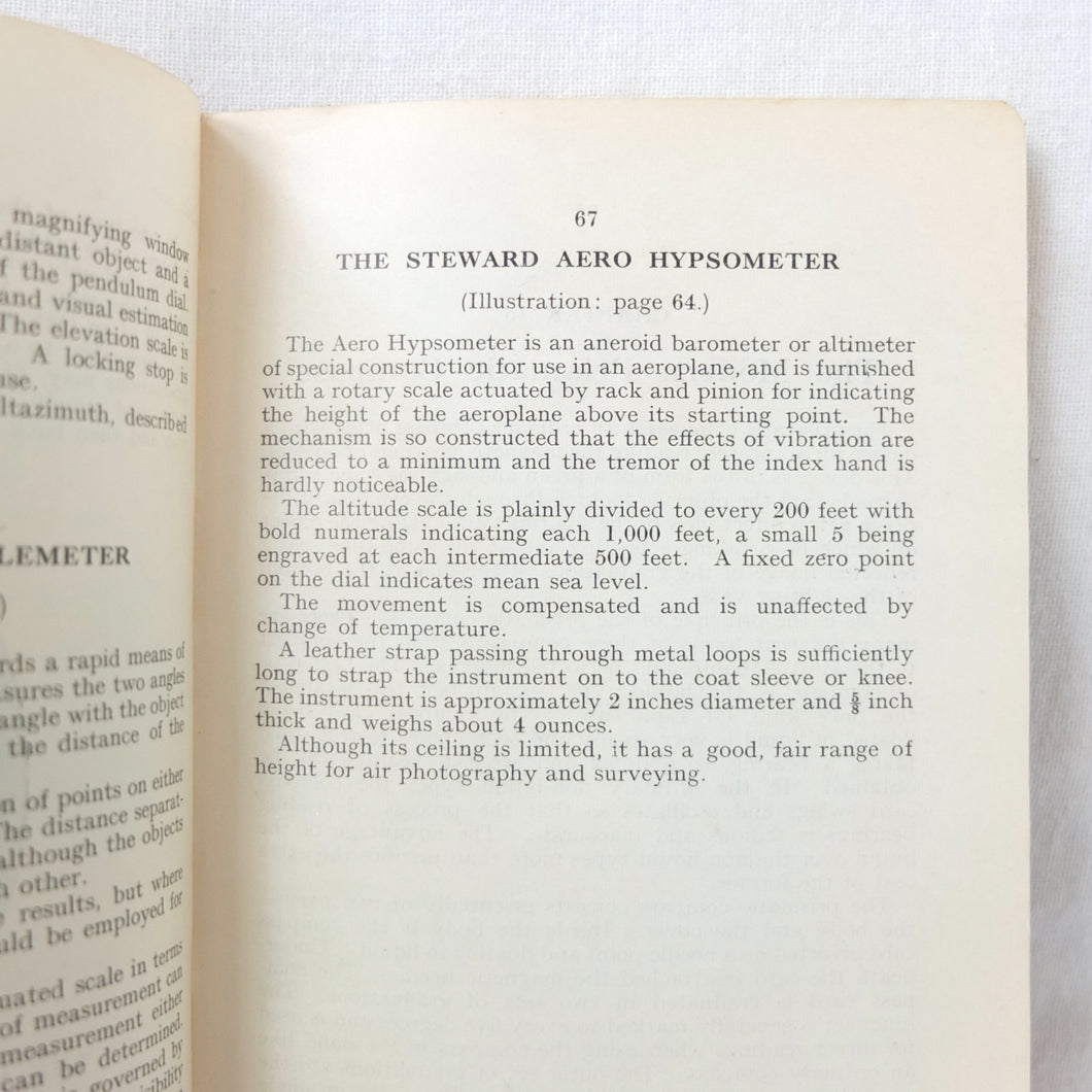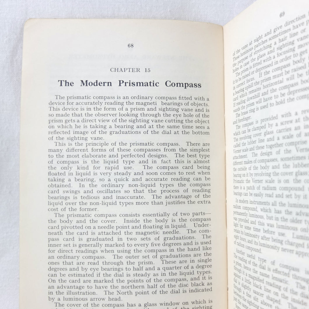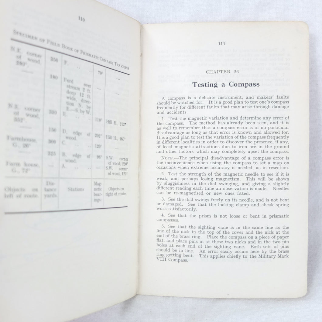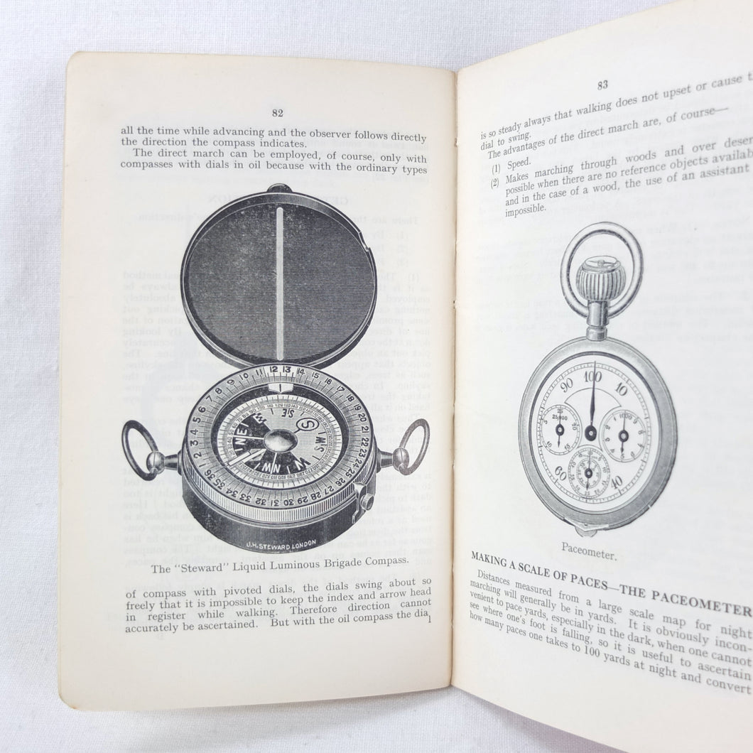 An original WW2 map and Compass manual by the celebrated Everest mountaineer Captain John Noel. Undated, but published c.1940 (there is an advert for one of Noel's other books on the rear endpaper with a quote dated October 1940). The book covers the British Army standard issue compasses and other navigation instruments in use from before WW1 to the 1930s. The Verners Compass, Steward patent Liquid Compass, Mirror Clinometer, and Steward Aero Hypsometer (a wrist altimeter used by the RFC and RAF) are among the instruments described. Their use is discussed and they are illustrated in the book. Compass use and map reading are covered in detail. Fully illustrated with more than 50 drawings and diagrams.